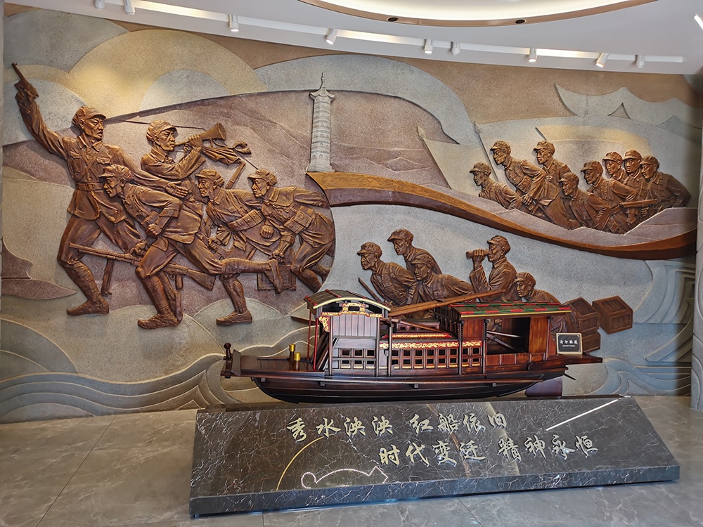 在嘉興地方黨史陳列館,首先映入眼簾的是一艘精致的紅船模型和一組浮雕作品,紅船模型前印著“秀水泱泱,紅船依舊,時(shí)代變遷,精神永恒”16個(gè)剛勁有力的大字。在黨史館里,一張張泛黃的老照片、一段段珍貴的文字,一件件老物件,向我們展現(xiàn)了一部鮮活的嘉興地方黨史,讓我們一起重溫黨的奮斗歷程。