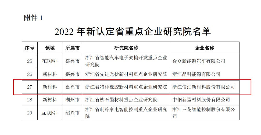 浙江信匯成功入選2022年度浙江省重點企業(yè)研究院 2023-01-21 13:38:52 浙江信匯新材料股份有限公司 瀏覽次數(shù) 9018 近日,浙江省科學技術廳公布了《2022年新認定省重點企業(yè)研究院名單》,信匯材料的“浙江省特種橡膠新材料重點企業(yè)研究院”順利通過審核、評審以及公示等環(huán)節(jié),被認定為“2022年省重點企業(yè)研究院”。信匯材料將以省重點企業(yè)研究院的認定為契機,通過科技創(chuàng)新推動企業(yè)轉型升級,提升產品的核心競爭力,為客戶創(chuàng)造不可替代的價值。 上一條浙江信匯召開碳管理項目啟動會 下一條辭舊迎新送祝福,納祥接福度佳節(jié)!