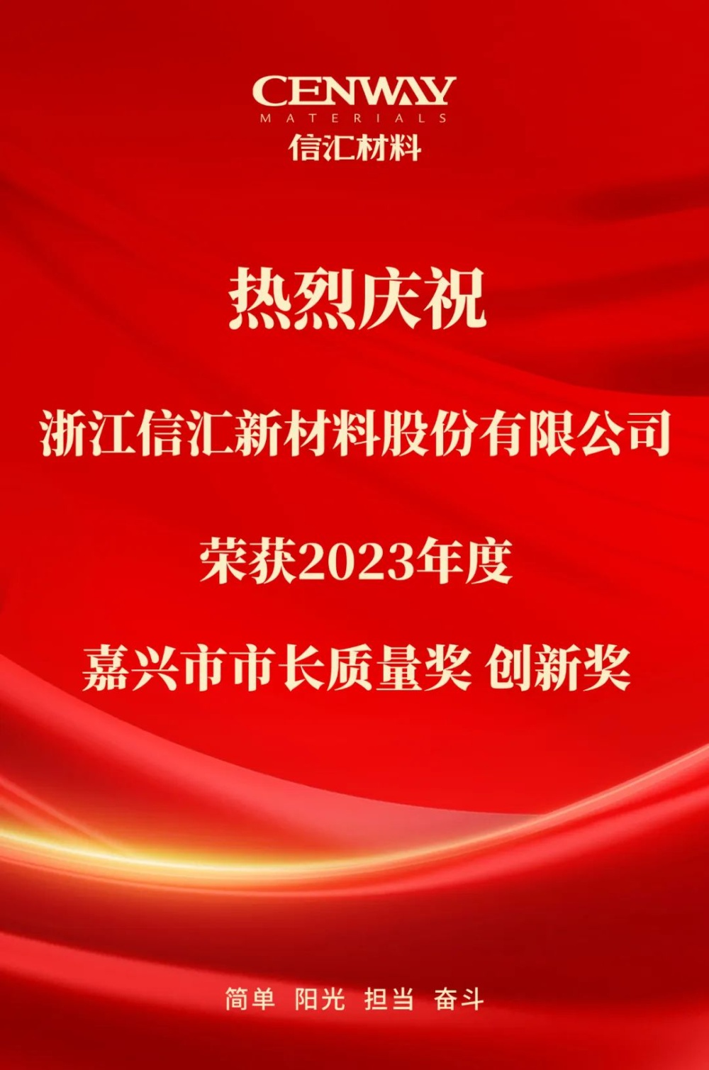 浙江信匯新材料股份有限公司榮獲2023年度嘉興市市長質(zhì)量獎(jiǎng)“創(chuàng)新獎(jiǎng)”。該獎(jiǎng)是嘉興市政府設(shè)立的最高質(zhì)量榮譽(yù)獎(jiǎng),主要授予全市范圍內(nèi)實(shí)施卓越績效管理模式、質(zhì)量管理水平和自主創(chuàng)新能力在同行業(yè)處于領(lǐng)先地位、取得顯著經(jīng)濟(jì)效益和社會(huì)效益的企業(yè)。