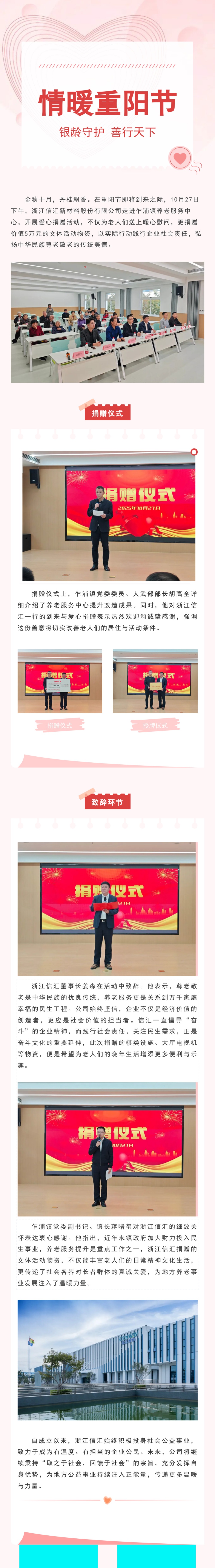 銀齡守護(hù) 善行天下 | 浙江信匯赴乍浦鎮(zhèn)養(yǎng)老服務(wù)中心開(kāi)展愛(ài)心捐贈(zèng)活動(dòng) 2025-10-28 17:23:03 浙江信匯新材料股份有限公司 瀏覽次數(shù) 1002 上一條沒(méi)有了 下一條浙江信匯7萬(wàn)噸丁基橡膠系列產(chǎn)品擴(kuò)建項(xiàng)目環(huán)評(píng)信息公示